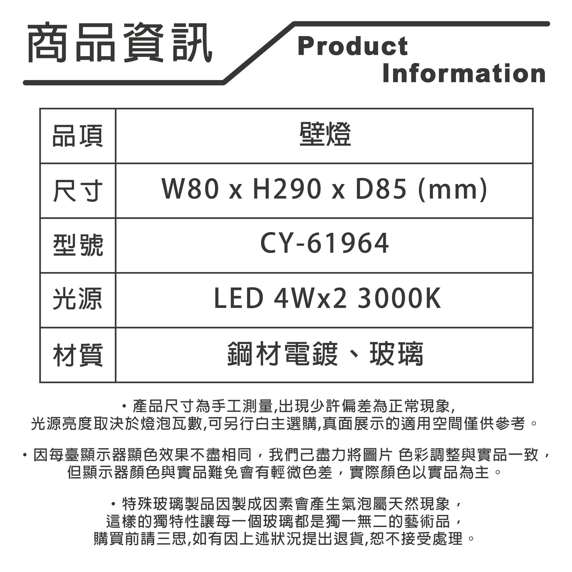 光源 : 內建4W LED x 2 3000k黃光