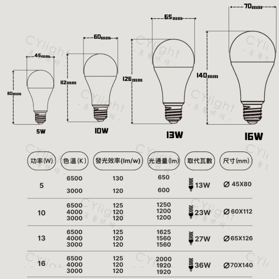 光通量:白光1625Lm 黃光1560Lm 自然光1560Lm